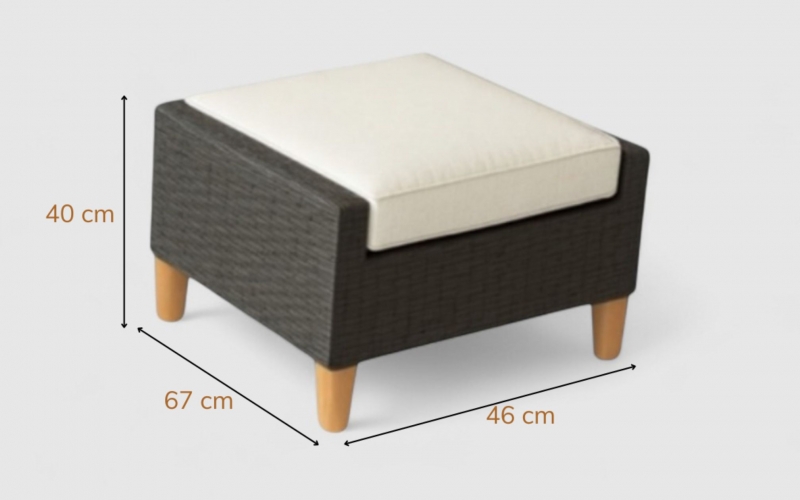 Cushion: Fabric 230gr, UV 3000h,100% polyester, foam D20, seat 8cm, back 18 cm, Cream