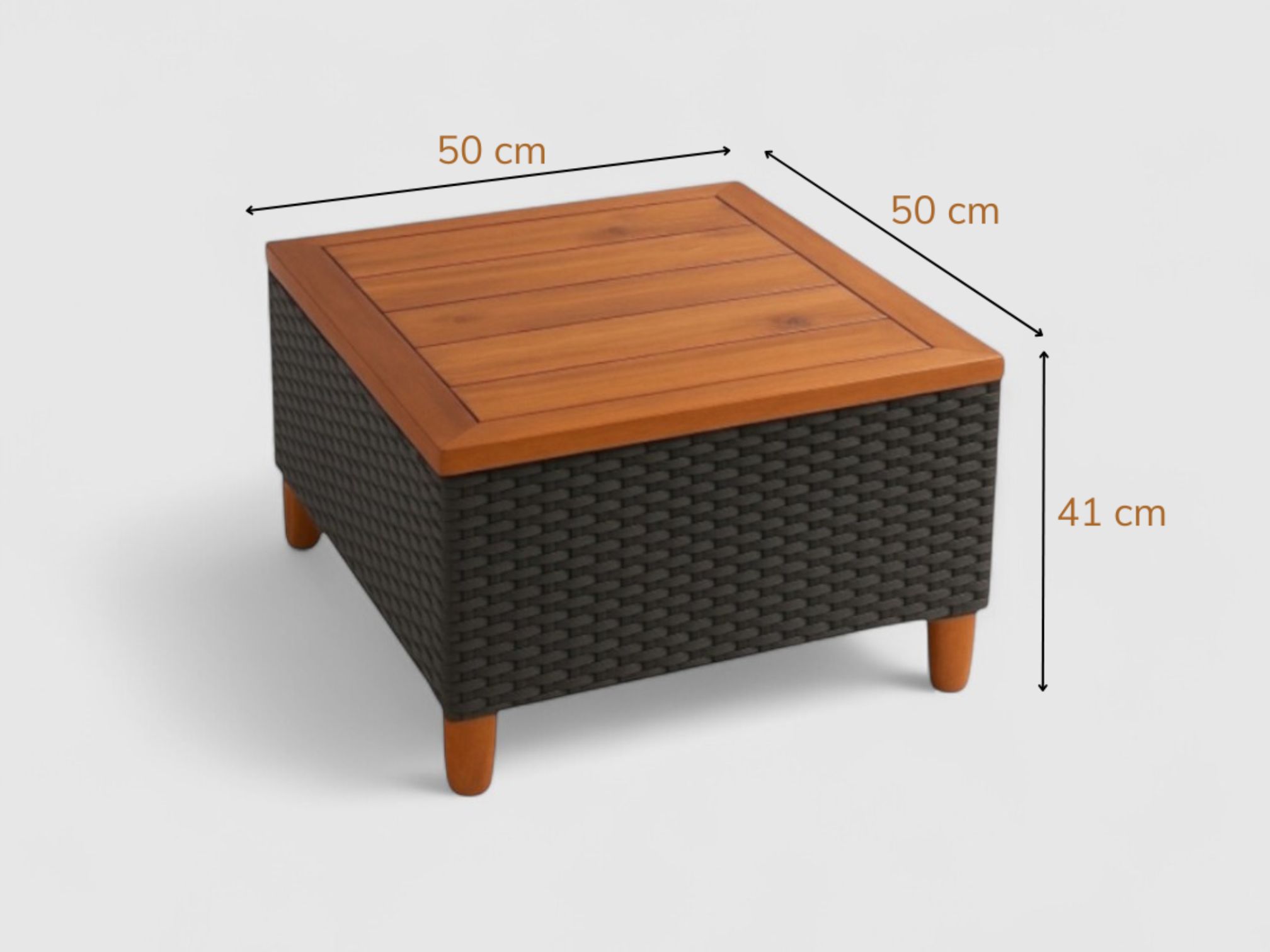 The teak color tone adds warmth and sophistication, while the compact square design makes it a versatile centerpiece for outdoor lounging or coffee sessions.