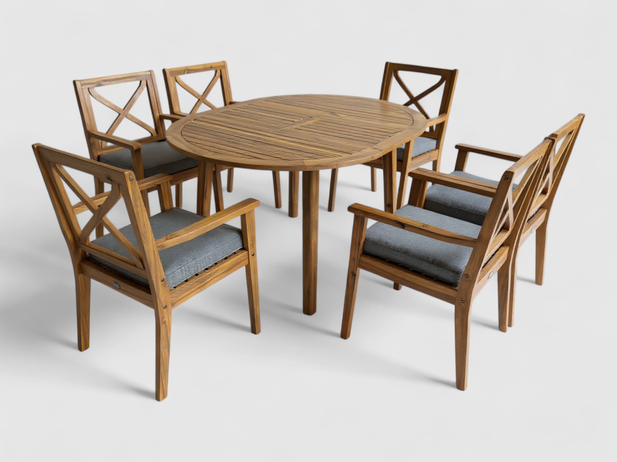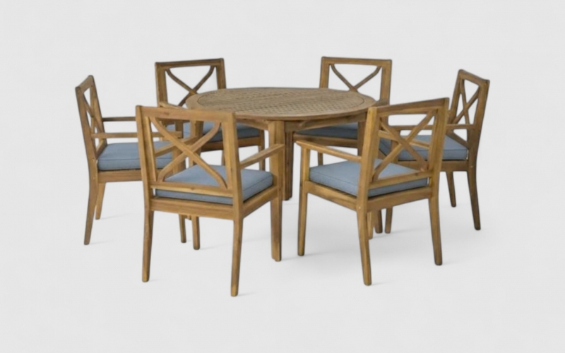 Crafted from 100% FSC-certified Acacia wood, the Cherry Dining Set embodies eco-friendly design and exceptional durability.