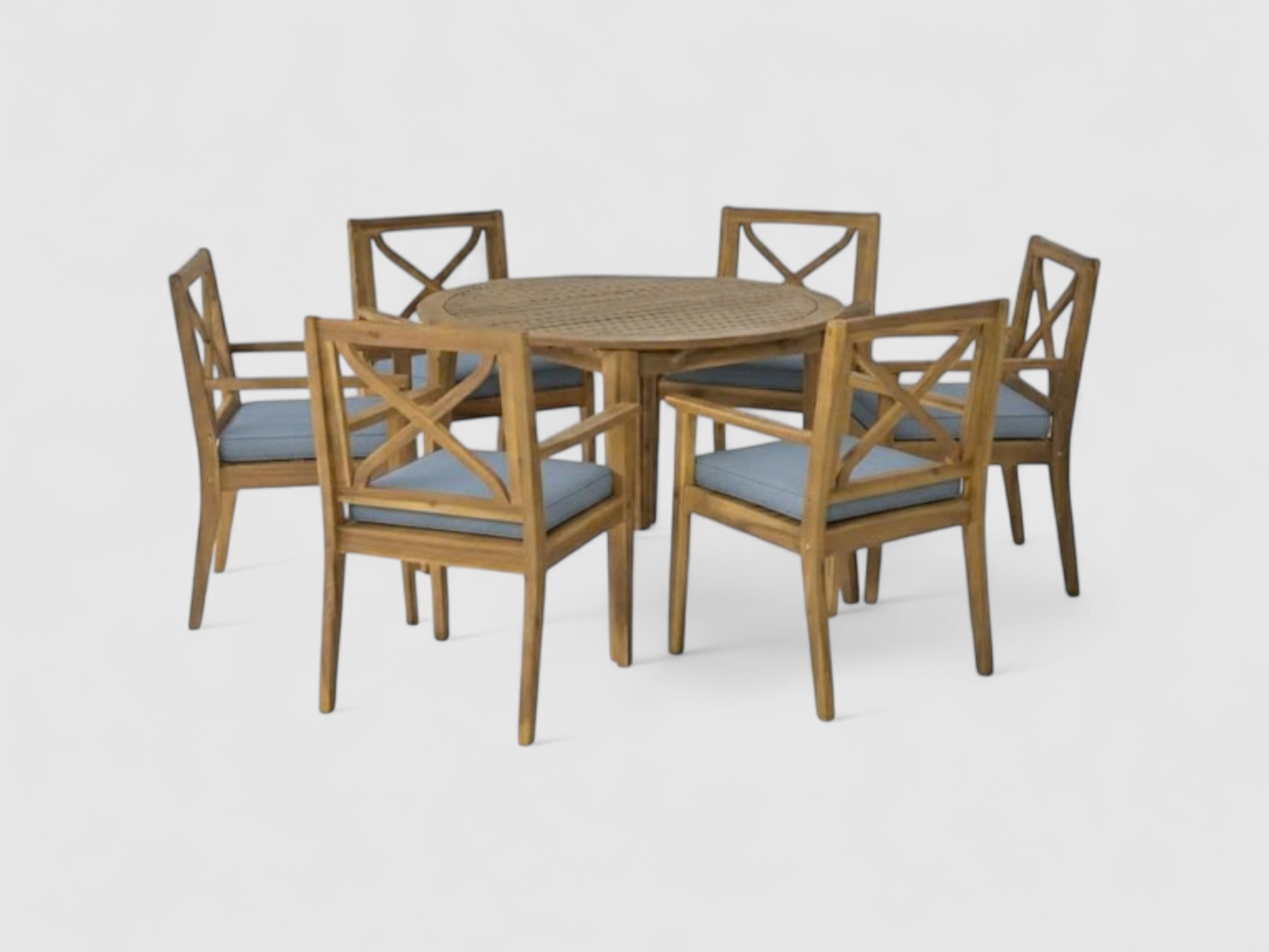 Bring timeless charm and natural warmth into your dining space with the Cherry Dining Set, where fine craftsmanship meets the authentic beauty of solid Acacia wood.