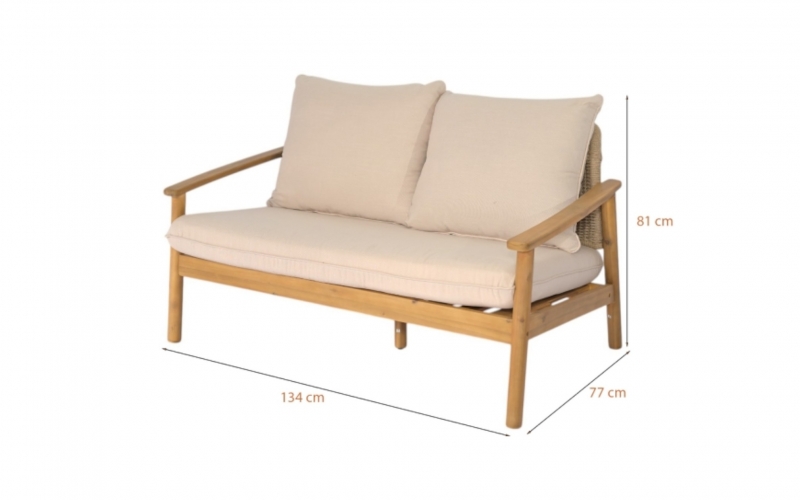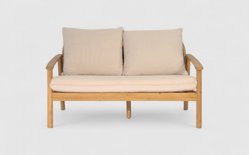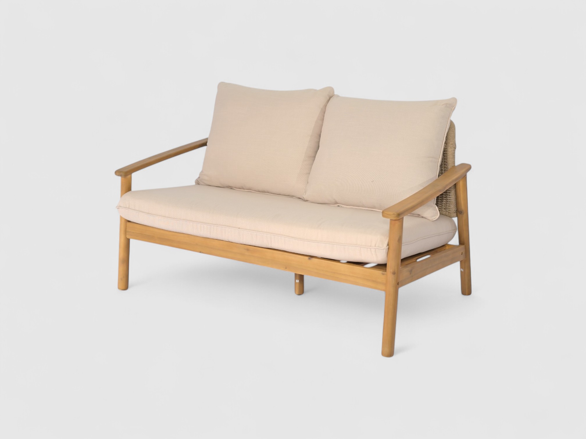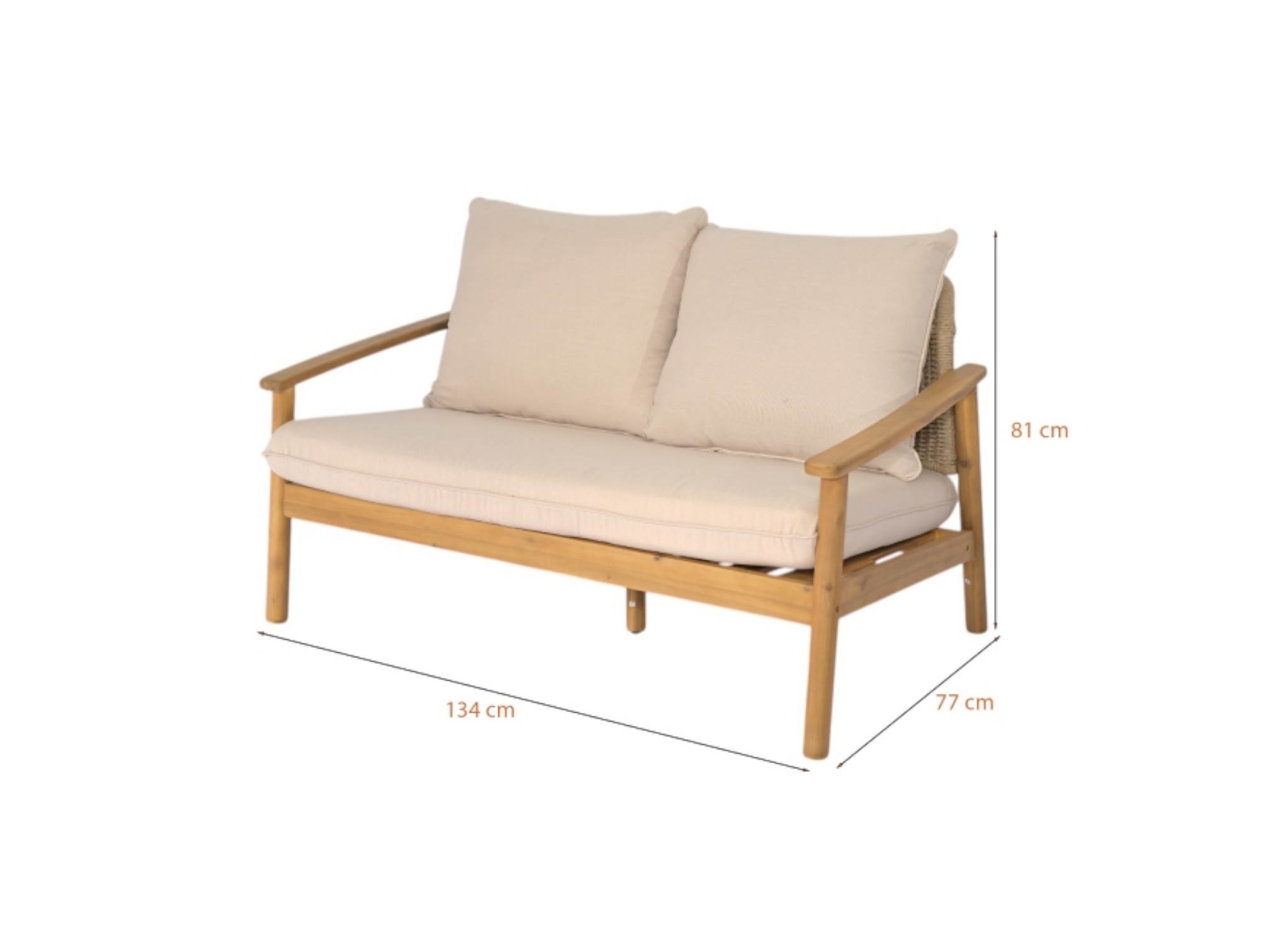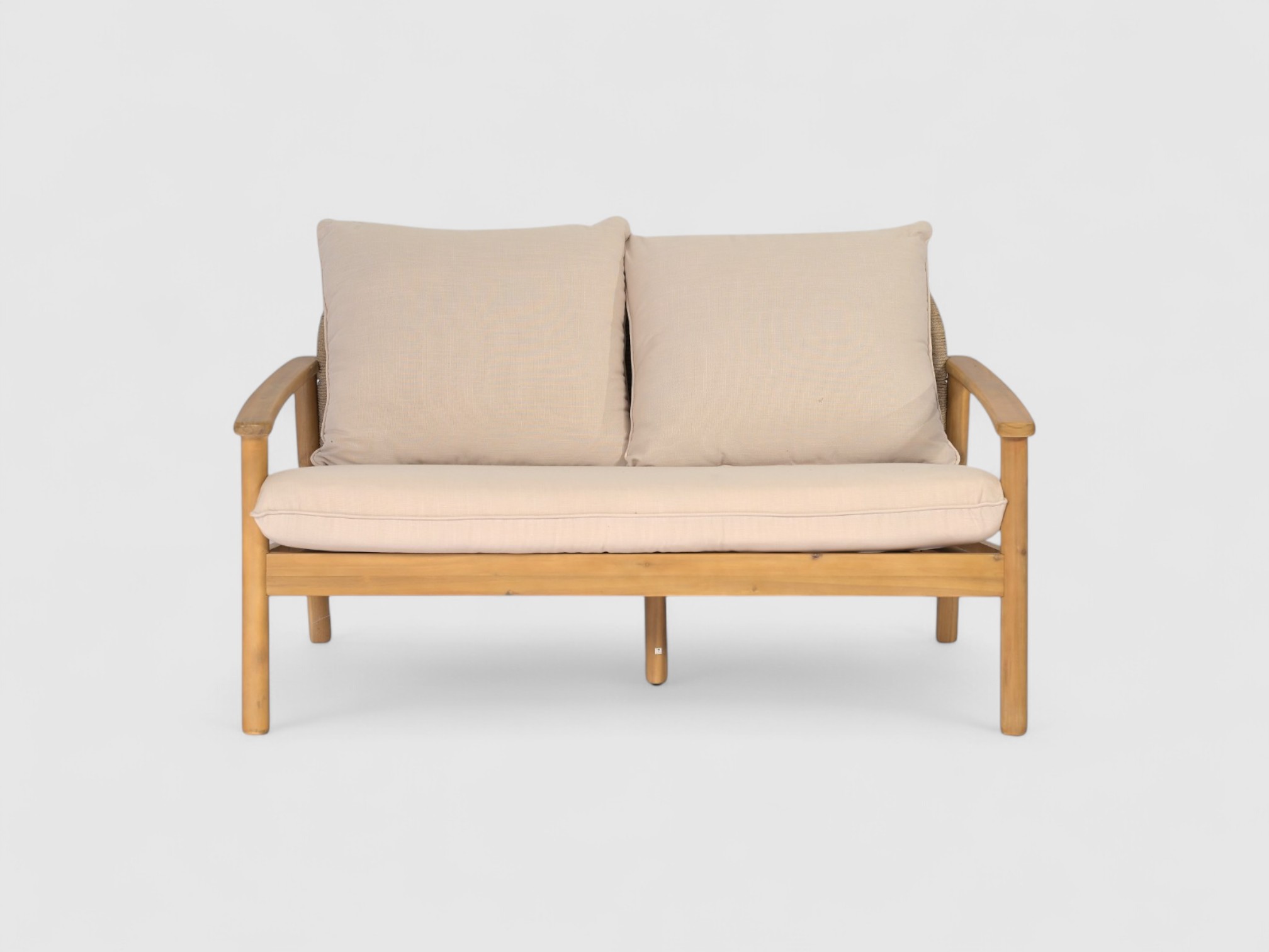 With its rope sides, sturdy acacia frame, and soft cream cushions, it invites you to share relaxed moments with family or friends in a naturally elegant setting.