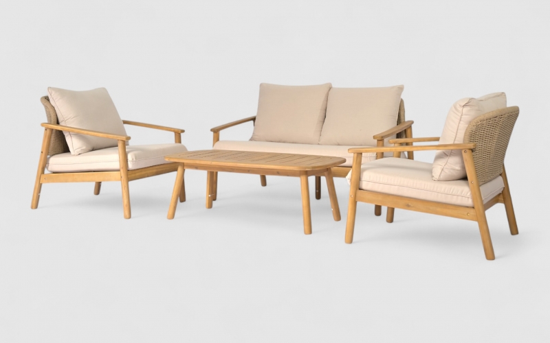 Designed for those who appreciate natural materials and timeless aesthetics, the Teak Look FSC Sofa Set turns every moment outdoors into a resort-like experience — calm, comfortable, and beautifully refined.
