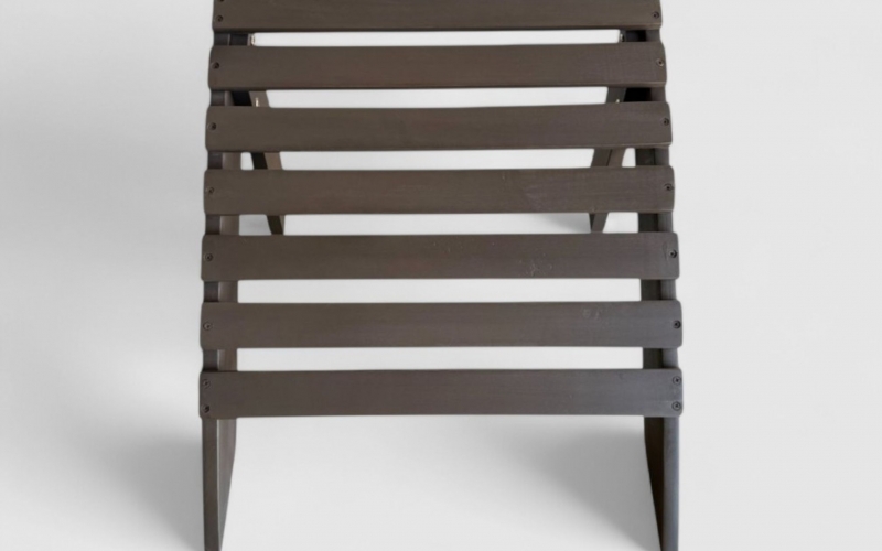 The signature piece of the collection, this chair offers superior comfort through its distinctive curved design and slatted backrest.