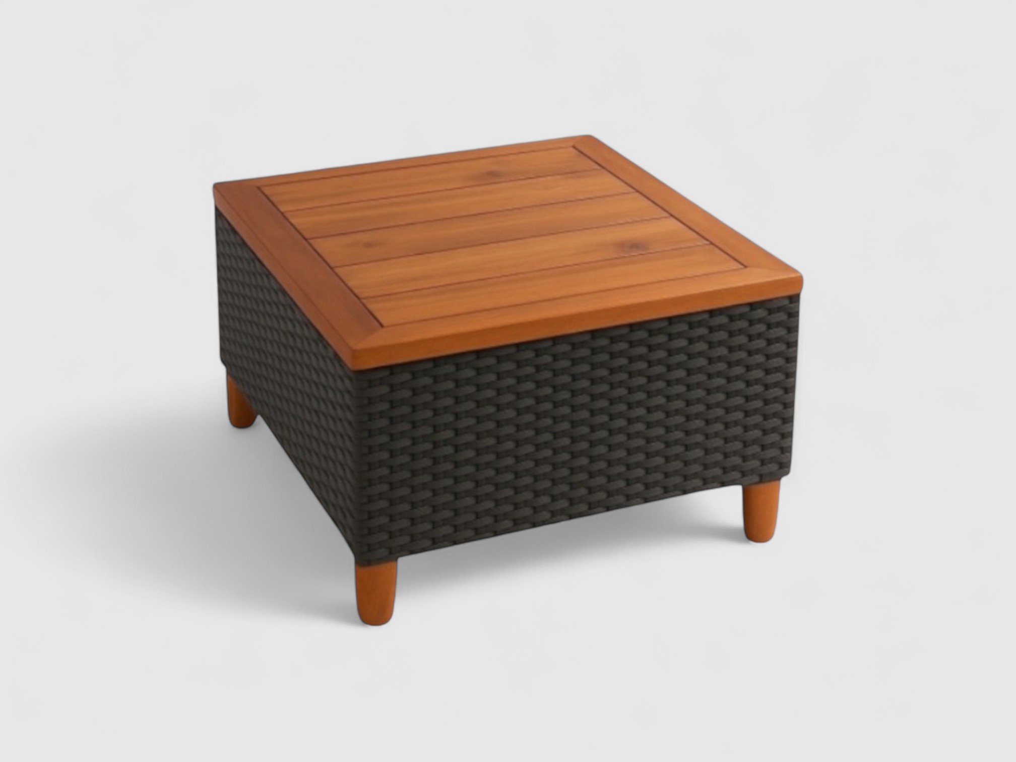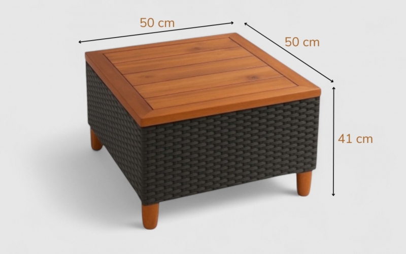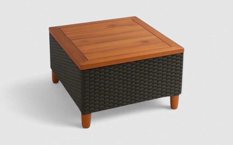 The teak color tone adds warmth and sophistication, while the compact square design makes it a versatile centerpiece for outdoor lounging or coffee sessions.