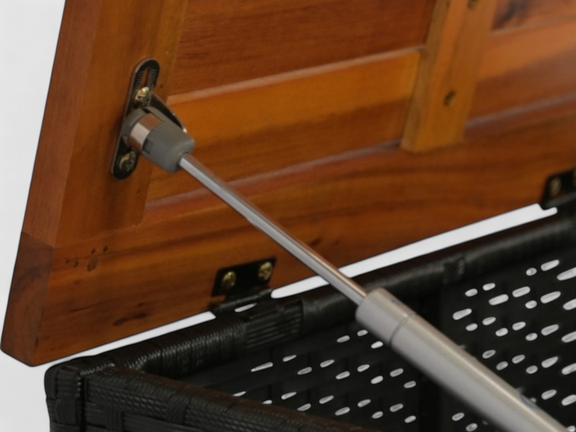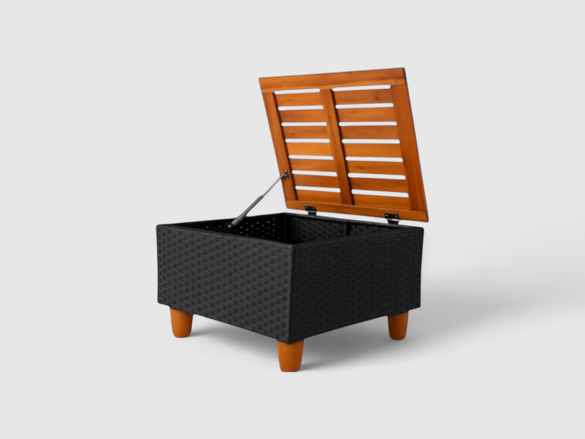 Constructed from 100% FSC acacia wood and durable black wicker plastic, it provides a stable structure with a warm teak tone.