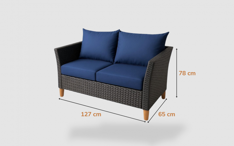 Every cushion is made from 230g UV-resistant polyester fabric (3000h) and filled with high-density D20 foam — 8cm for the seat and 18cm for the backrest — ensuring long-lasting comfort and maintaining its shape over time.