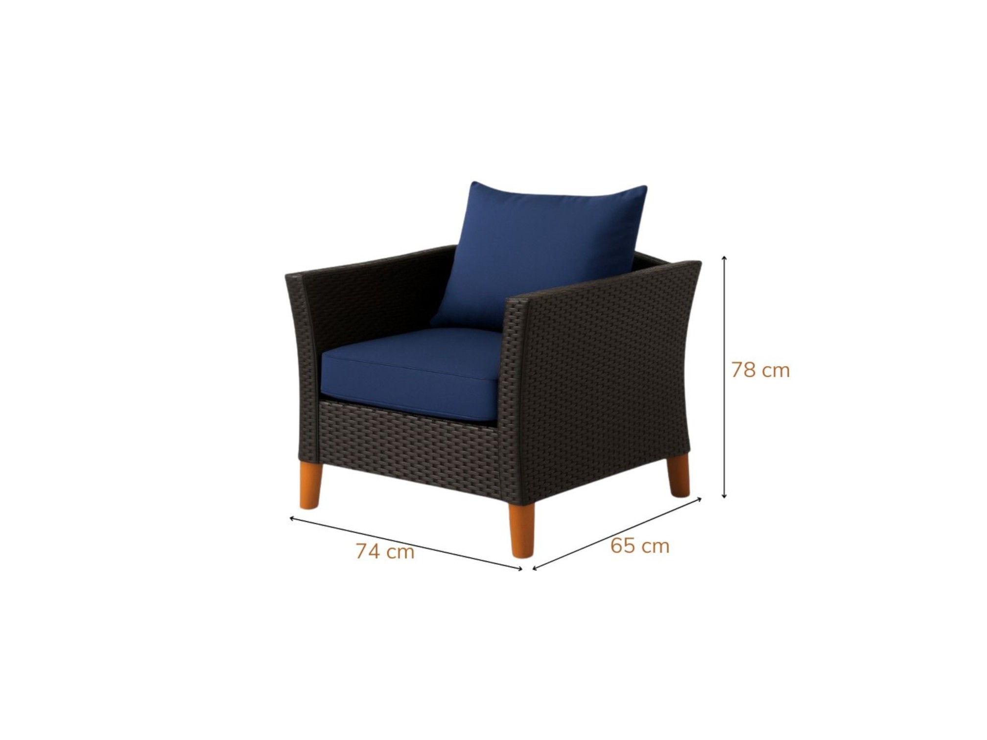 Cushion: Fabric 230g, UV 3000h, 100% polyester, D20 foam (seat 8cm, back 18cm), Navy