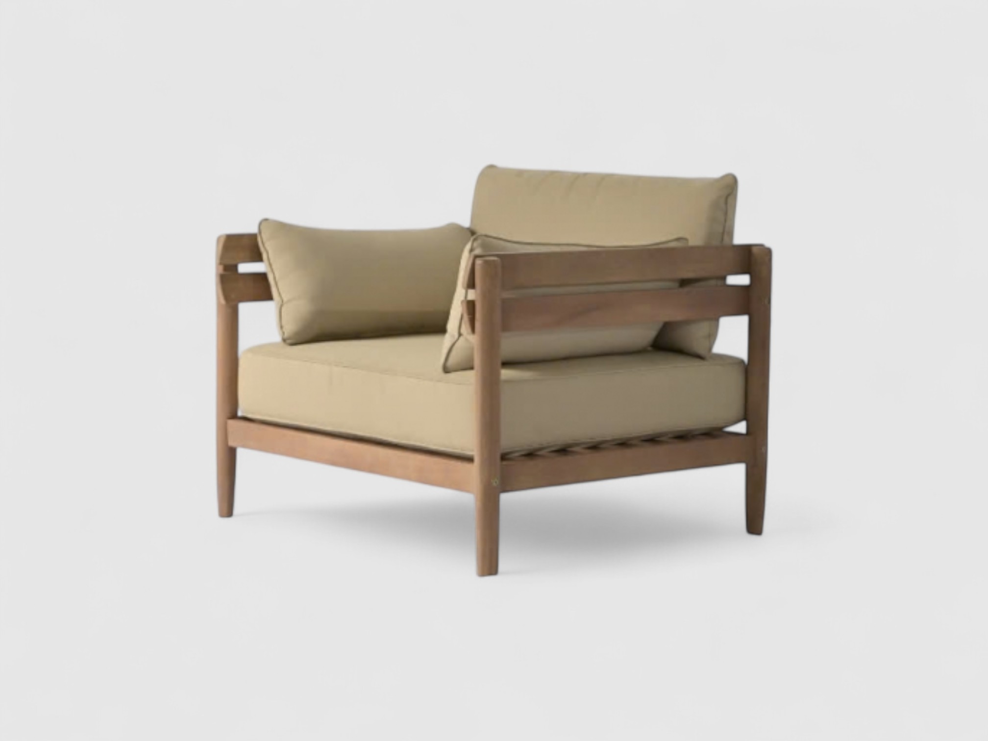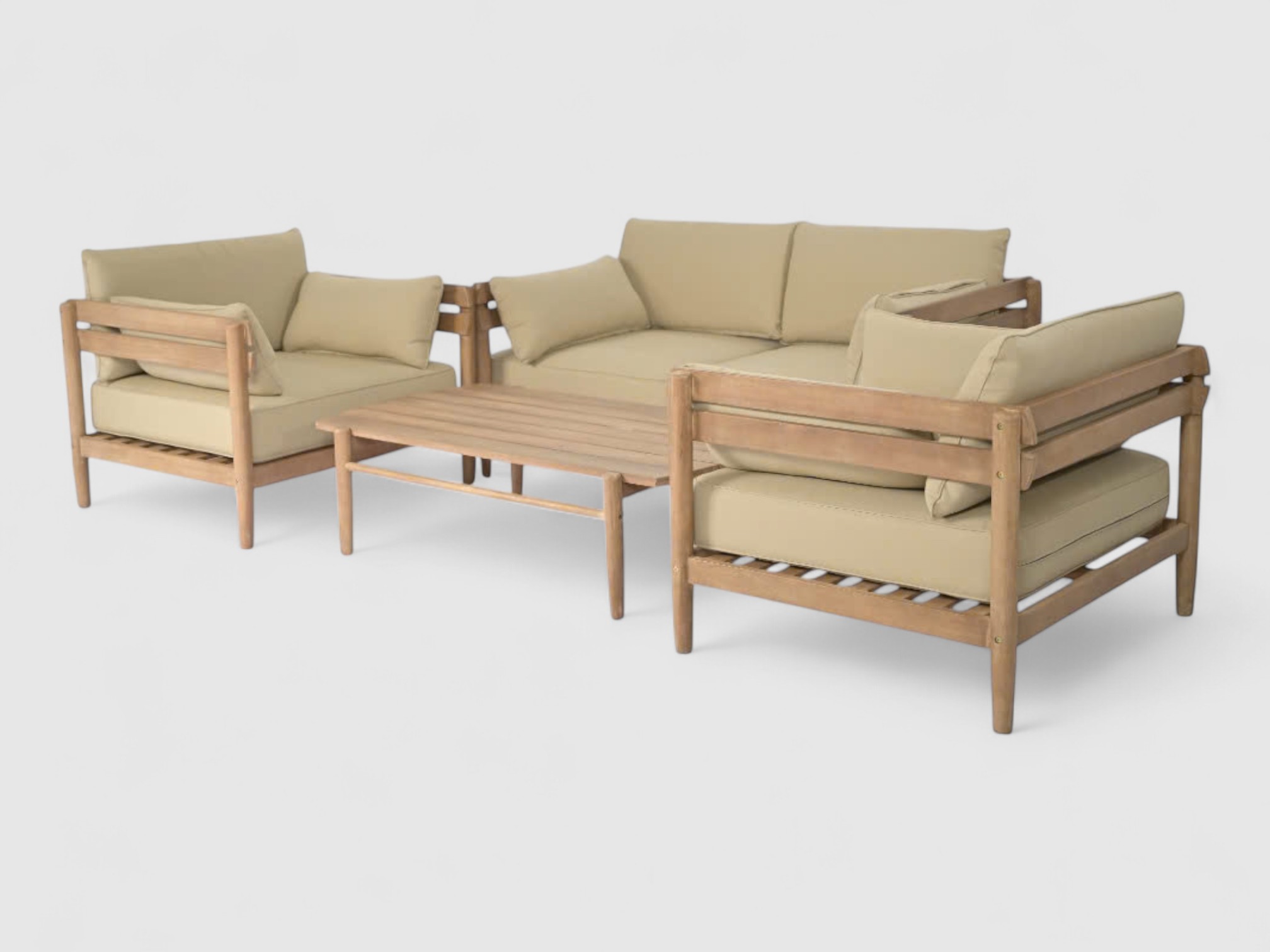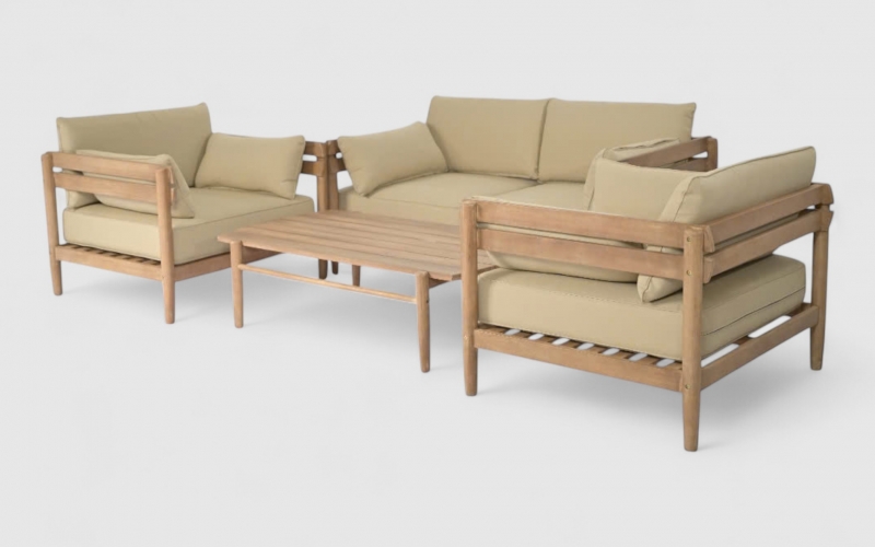 Designed for modern Australian homes, the Ruby Sofa Set brings together timeless craftsmanship, sustainable materials, and effortless comfort. Each piece showcases the natural warmth of 100% FSC-certified Eucalyptus and Acacia wood, finished in a soft light tone that complements any outdoor space — from garden patios.