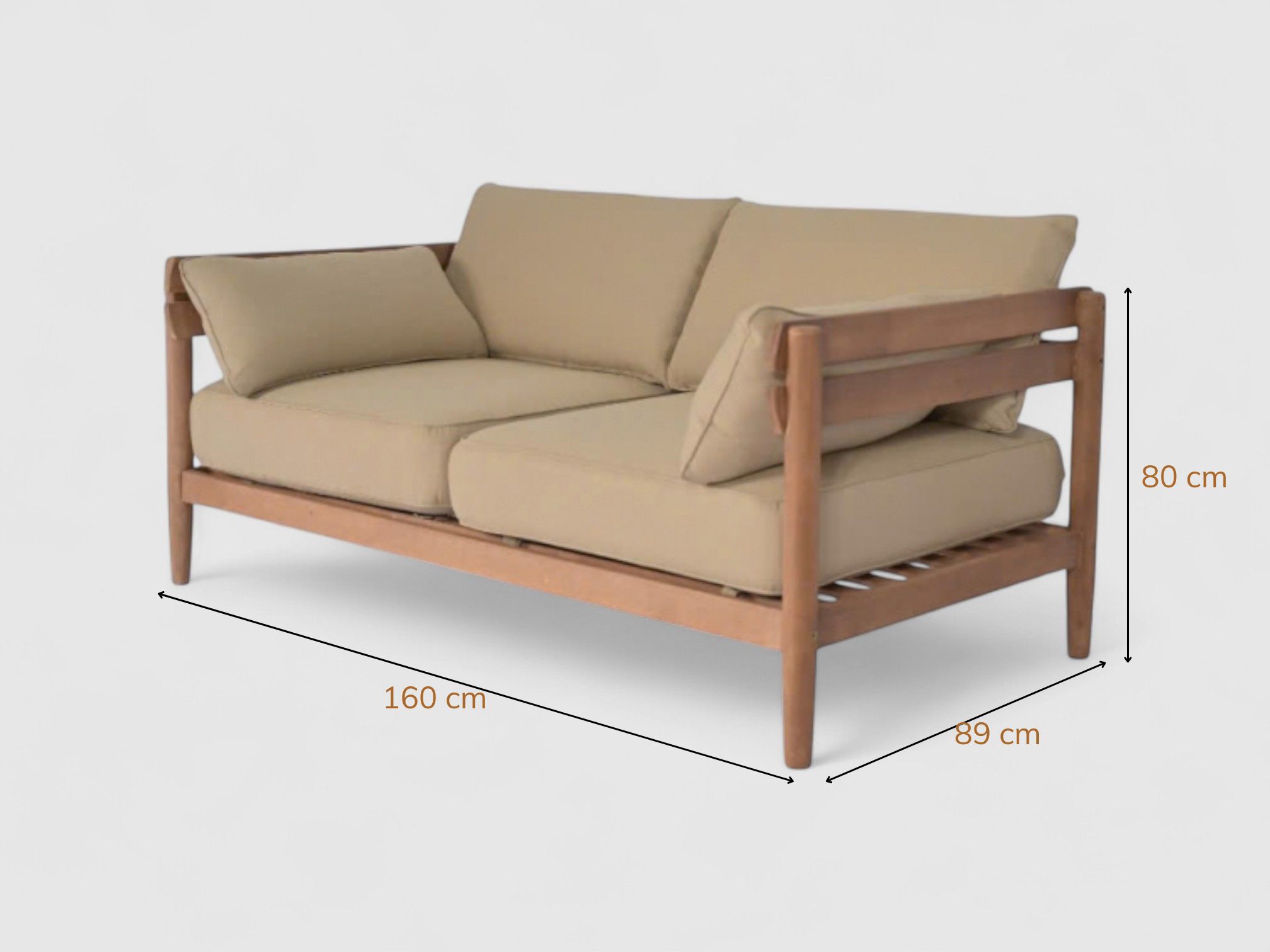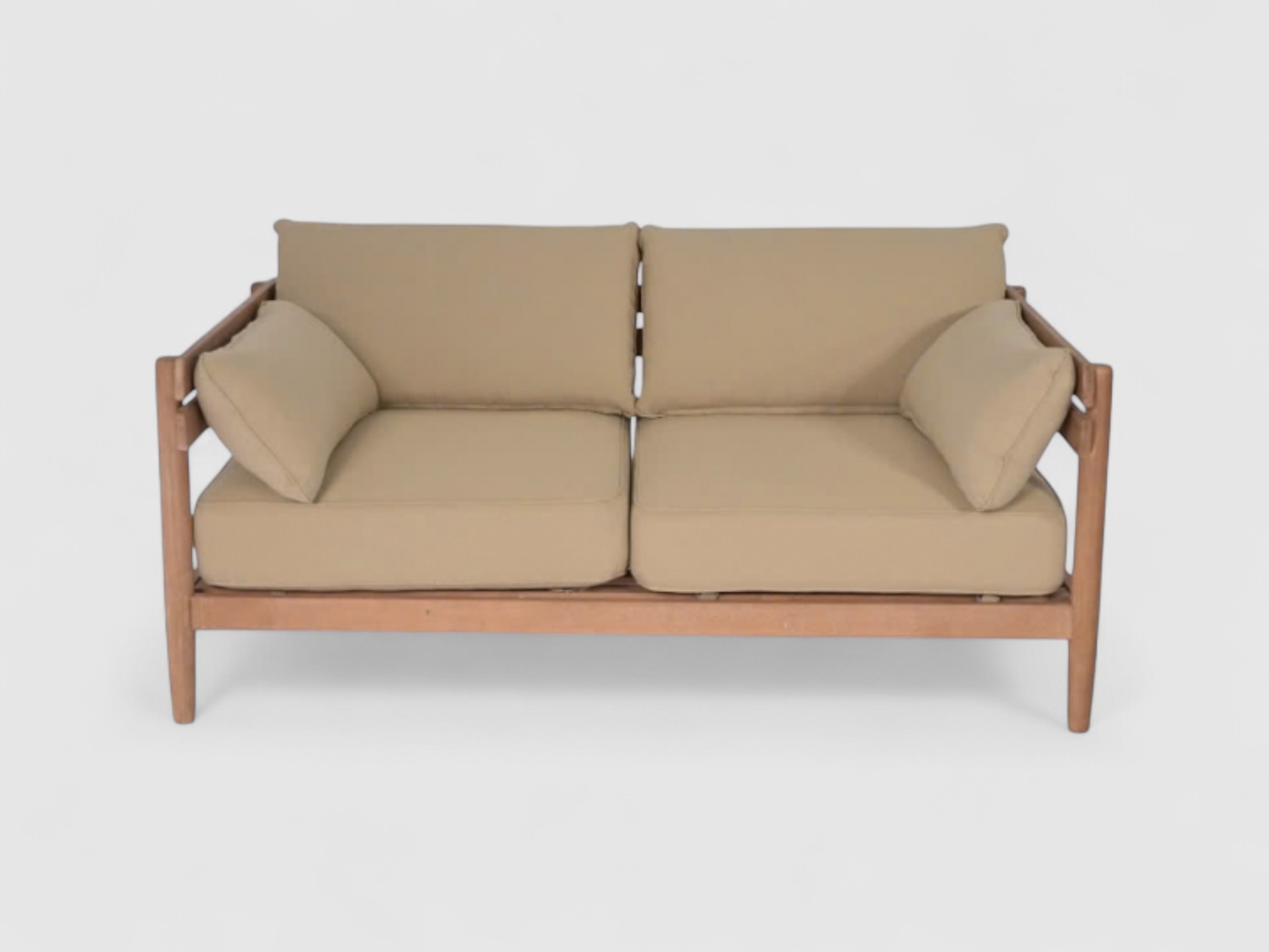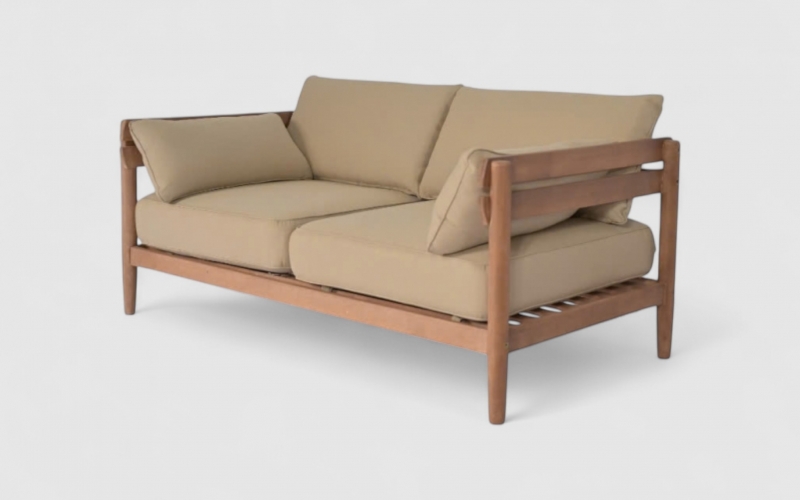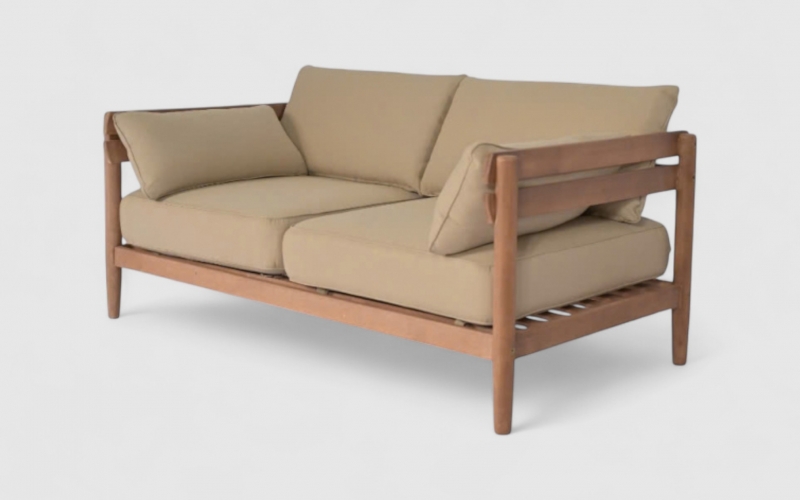 Perfect for couples or family moments, the Ruby 2-Seater Sofa combines sturdy Eucalyptus wood with deep cushions to create a cosy and refined atmosphere.