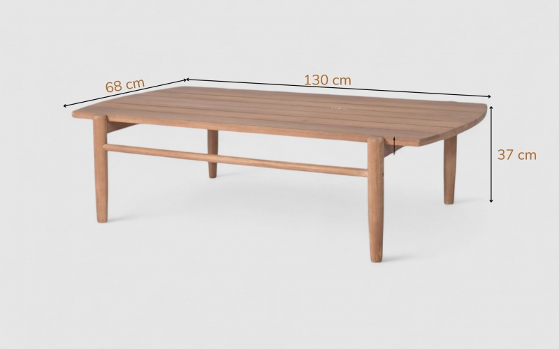 The Ruby Sofa Table is crafted from Eucalyptus wood 100% FSC, finished in a light natural tone that highlights the wood’s beautiful grain. Its sleek, low-profile design makes it ideal for serving drinks, holding décor, or gathering around with friends.