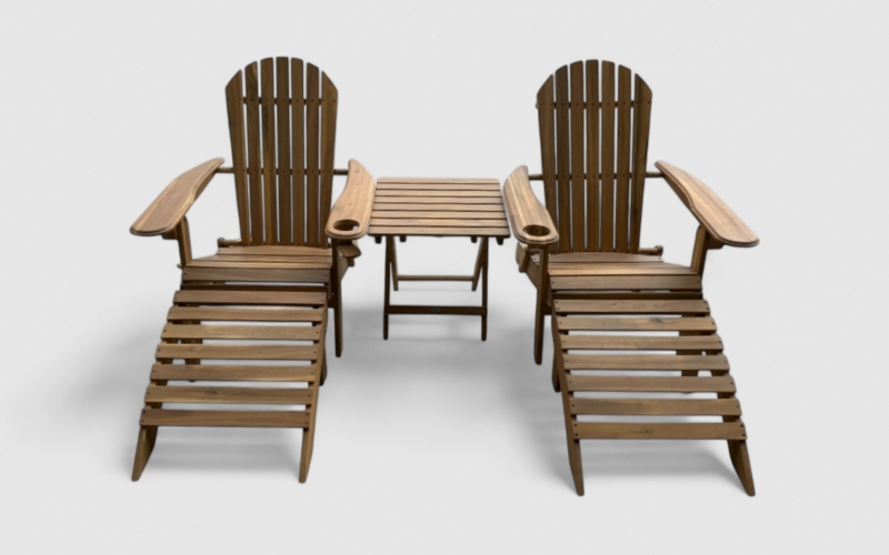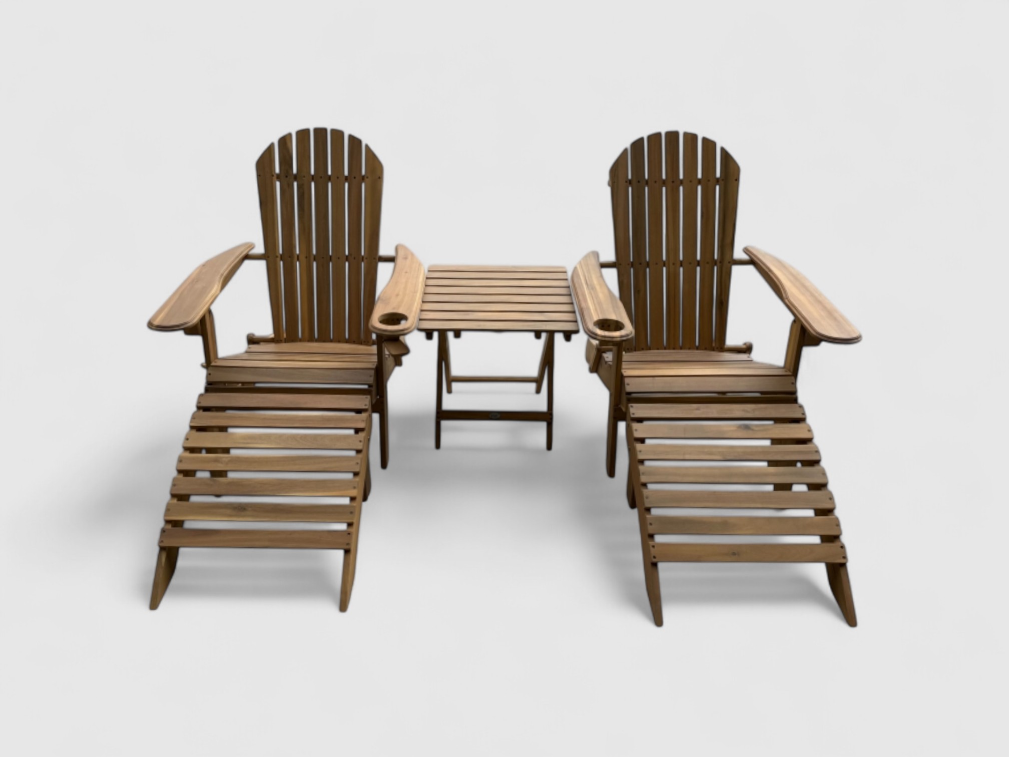 With two Adirondack chairs, two matching footrests, and a versatile coffee table, it’s the perfect setup for peaceful mornings, relaxing afternoons, or cozy evening gatherings.